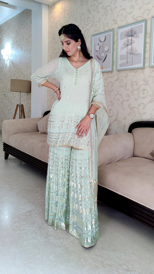 Parrot Green Chanderi Suit with Thread & Gotta Embroidery