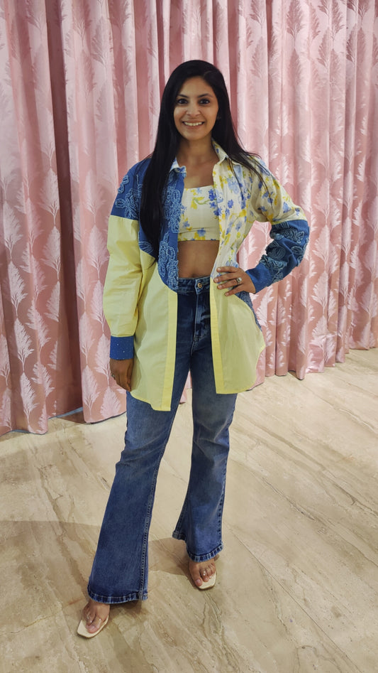 Cotton & Denim mix Open Shirt with Crop Top