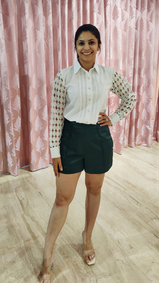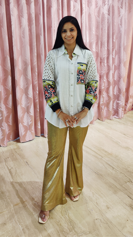 Cotton Shirt with Hakuba Full Sleeves & Lace Detailing