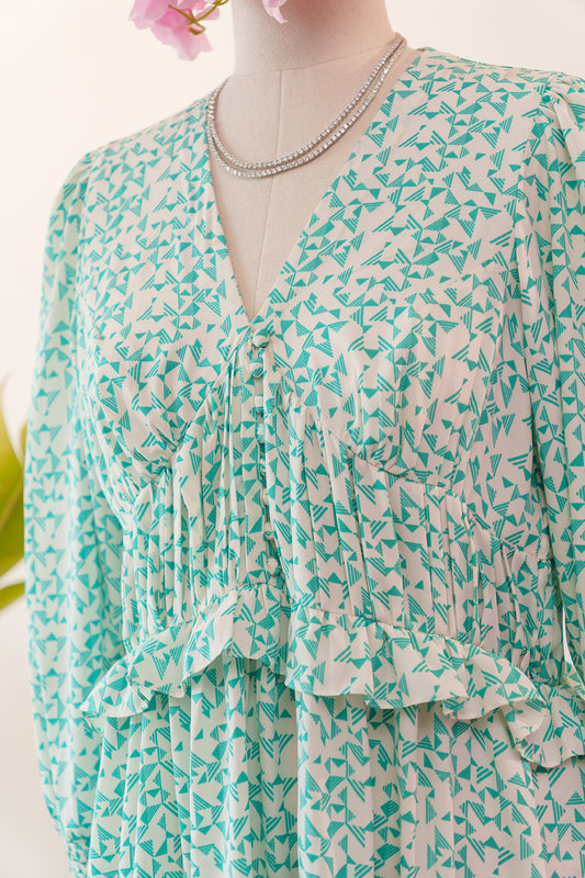 Flared Dress in Green Willow Leaf Print