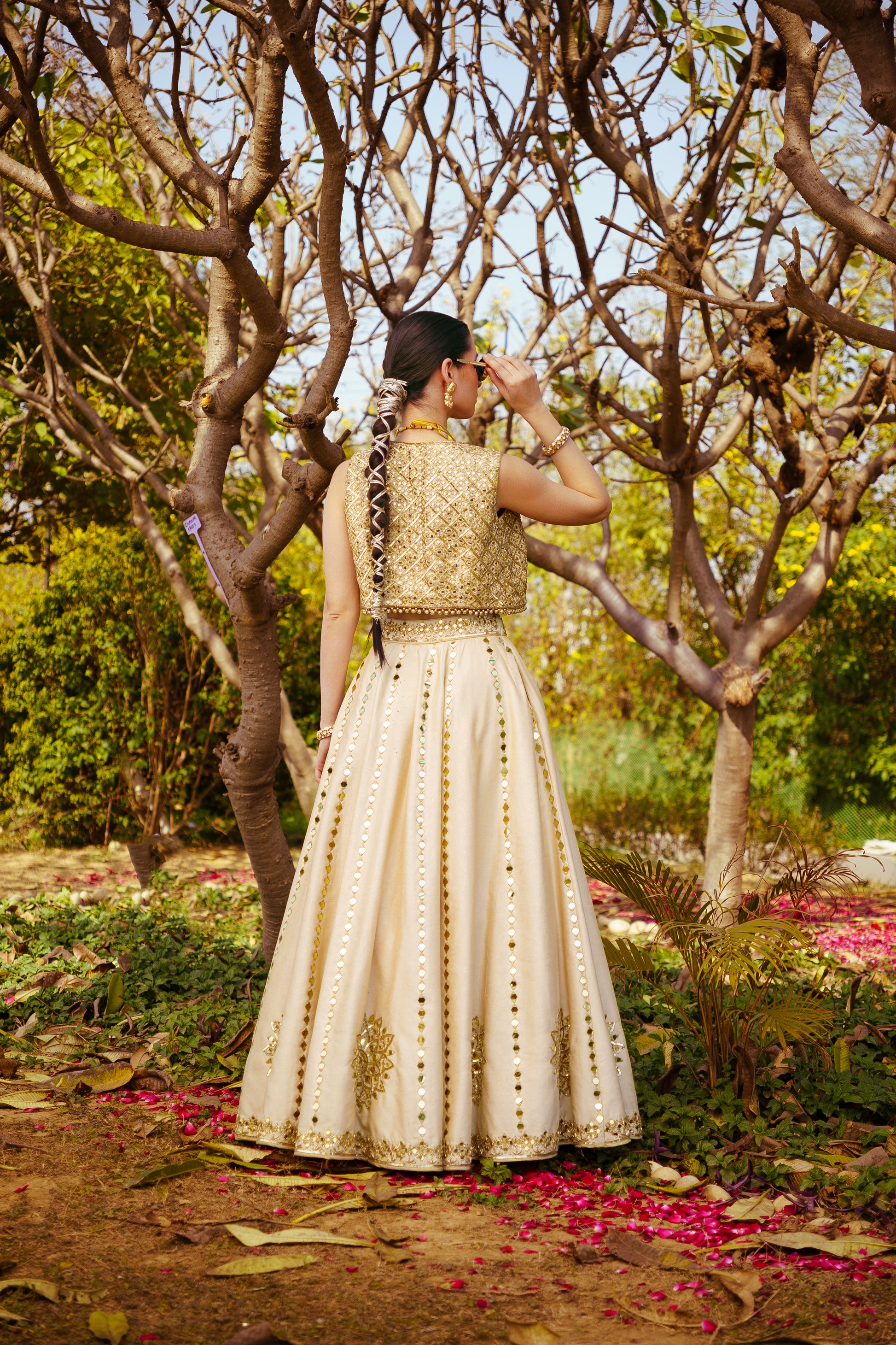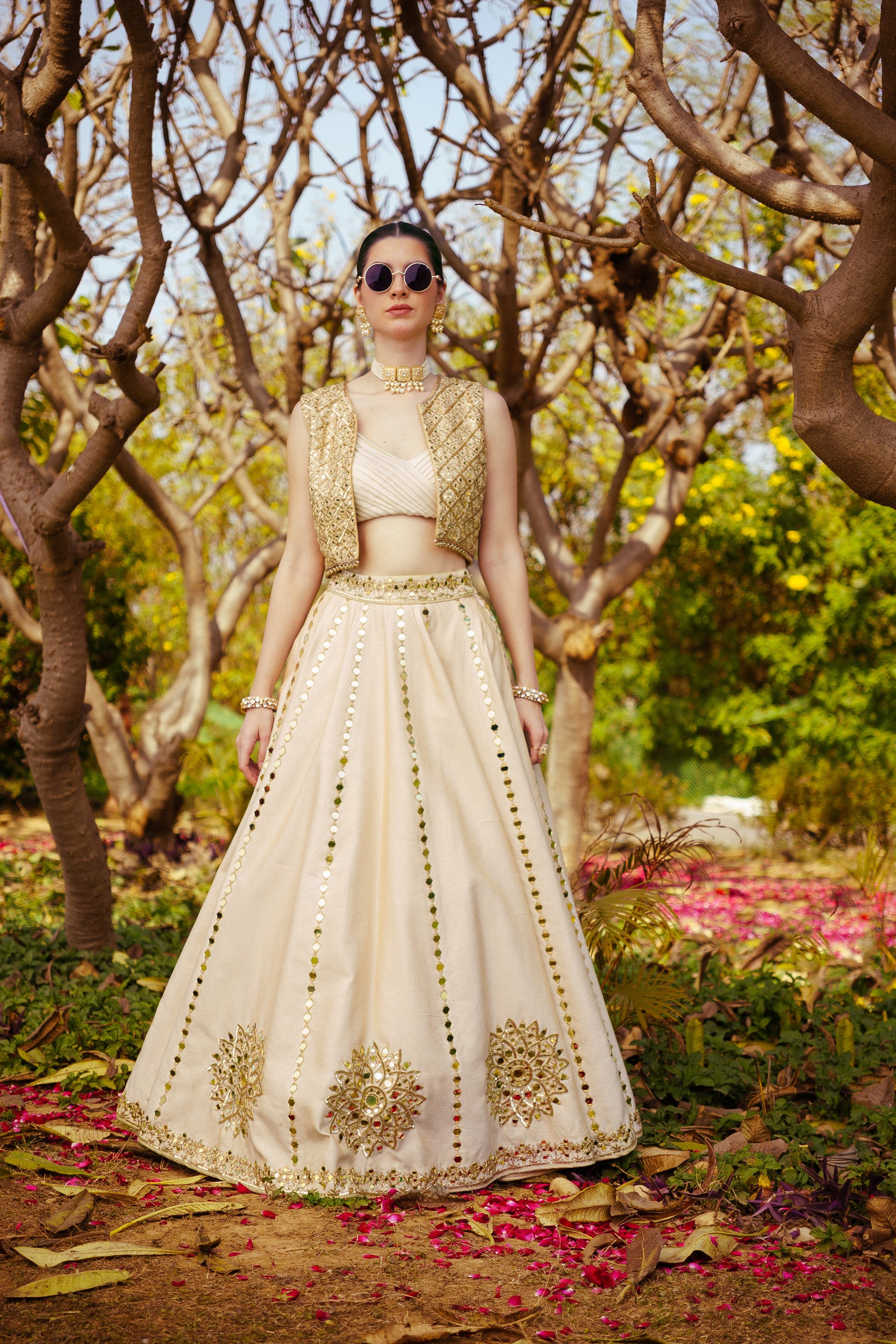 Mirror Work Lehenga + Shimmer Crop Top + Mirror Work Bolero